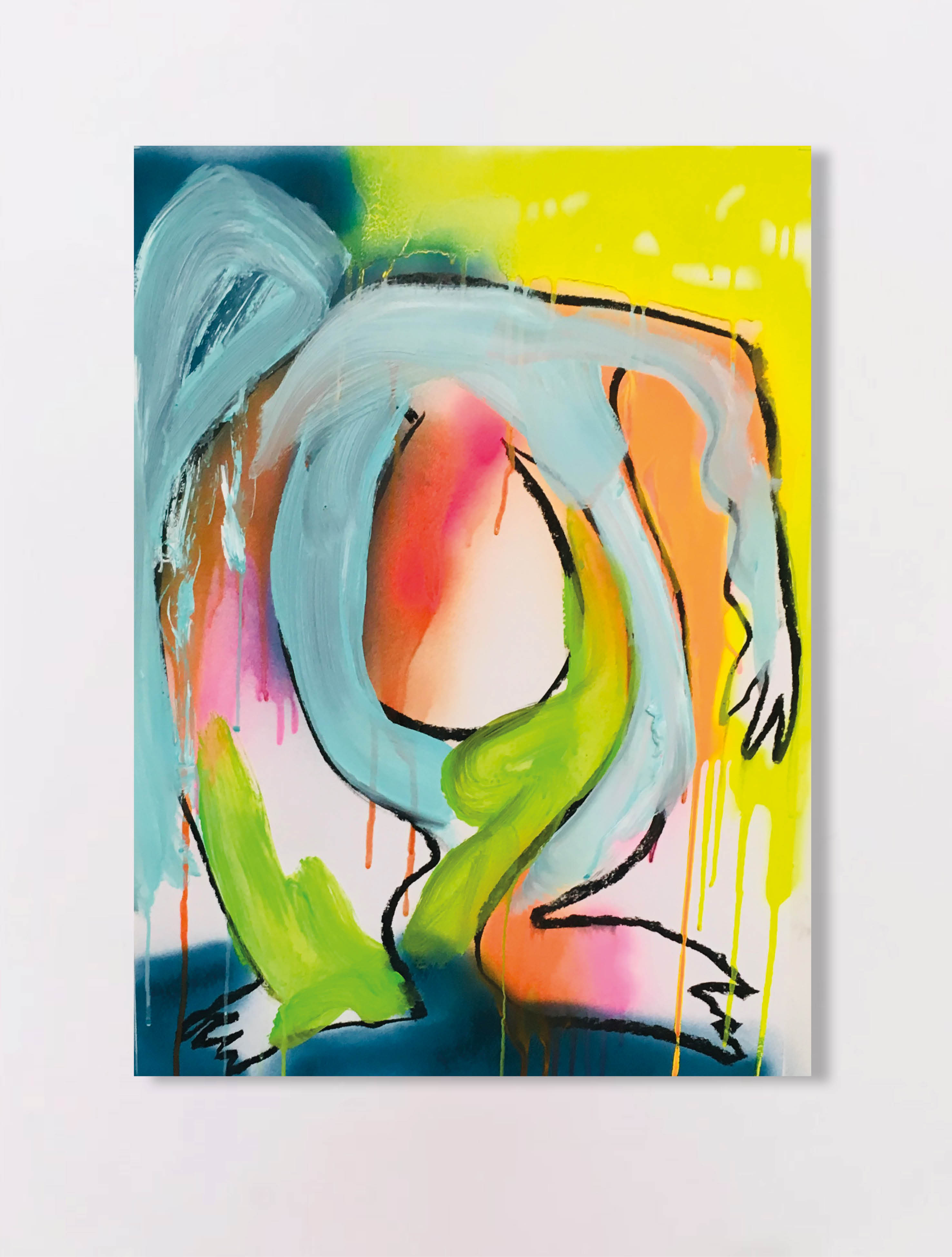 Acrylic, ink, spray paint and charcoal on paper